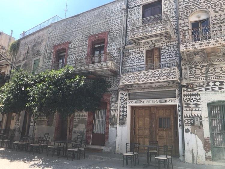 Εκείνο που γοητεύει τον επισκέπτη με την πρώτη ματιά είναι τα Πυργούσικα σπίτια με τα «ξυστά», τύπος διακόσμησης της πρόσοψης με γεωμετρικά σχήματα σε μαύρο και άσπρο. Η τεχνική βασίζεται στη μαύρη άμμο του επιχρίσματος, η οποία αφού ασπριστεί με επιμέλεια, ξύνεται ακολουθώντας απλά ή σύνθετα μοτίβα και δίνει μαύρα θέματα πάνω σε λευκό φόντο που θυμίζουν τα ιταλικά sgraffiti.