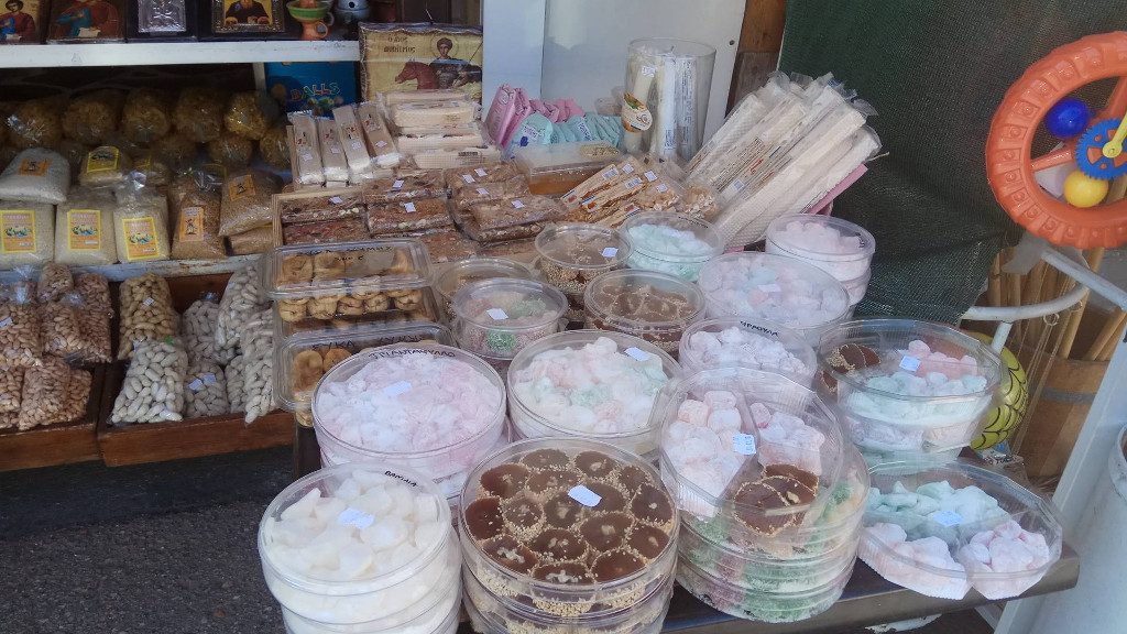 Πολλά είναι επίσης τα τουριστικά μαγαζιά που πωλούν παραδοσιακά ντόπια προϊόντα όπως θυμαρίσιο μέλι, λουκούμια, τραχανά κα.