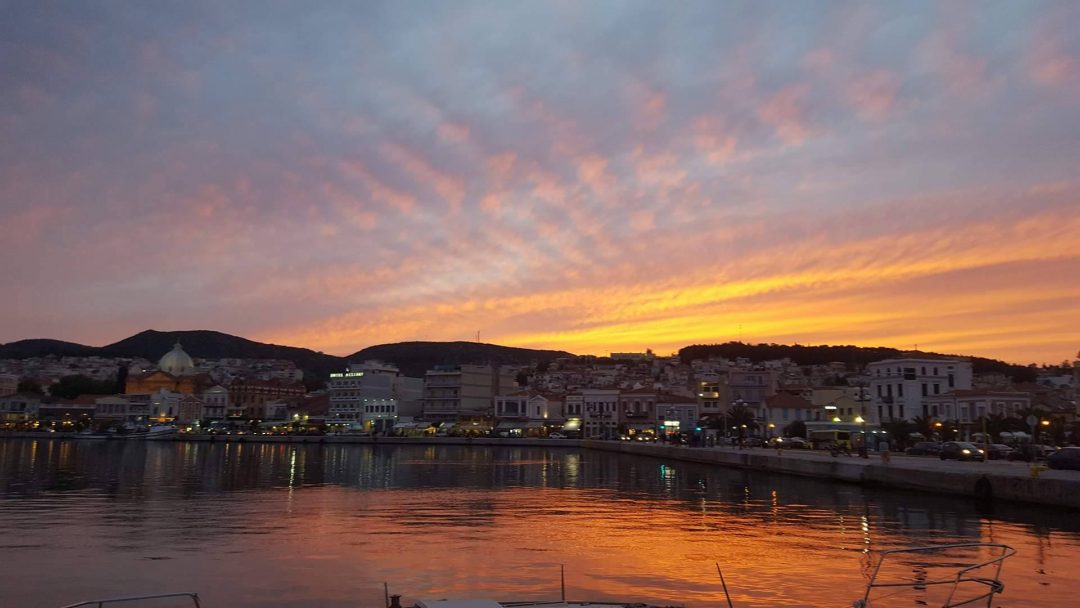 Ηλιοβασίλεμα με θέα την «κινηματογραφική» προκυμαία και τα αρχοντικά της Μυτιλήνης (φωτο)