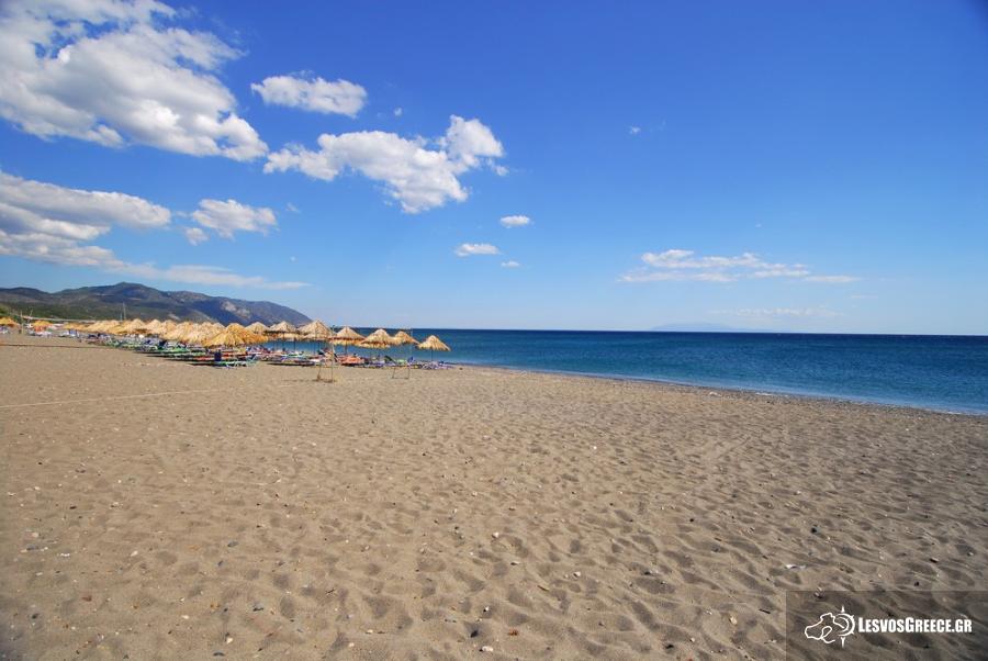 Μια μικρή και πολύ όμορφη παραλία που τα συνδυάζει όλα. Αρχικά πρόκειται για ένα κολπάκι με υπέροχη βλάστηση. Κάτω από την παχιά σκιά των πεύκων μπορείς να απλώσεις την πετσέτα σου και να καθίσεις για ώρες… και όταν πεινάσεις; Κάνεις είκοσι βήματα και βρίσκεται σε ένα υπέροχο ταβερνάκι δίπλα στο κύμα. Η παραλία ονομάζεται έτσι λόγω του ξωκκλησιού του Αγ. Ερμογένη το οποίο είναι ένα πολύ όμορφο λευκό εκκλησάκι με θέα τη θάλασσα. Η παραλία απέχει μόλις 25 χλμ από την πόλη της Μυτιλήνης και σας περιμένει για να σας… ξεκουράσει.