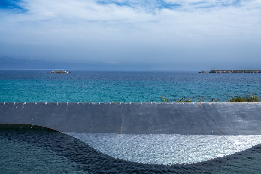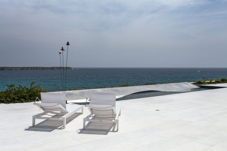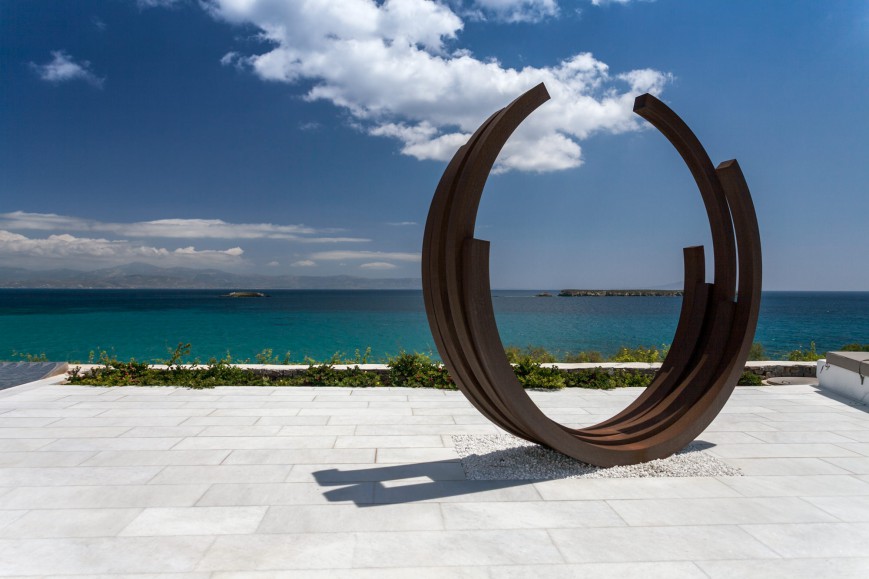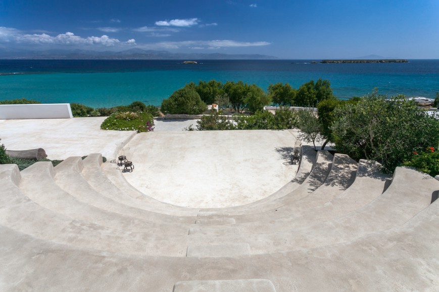 Δίπλα στην πισίνα ένας μεγάλος χτιστός καναπές με θέα τη θάλασσα και το ηλιοβασίλεμα, χρησιμεύει ως σημείο χαλάρωσης. Κοντά στην κυρίως κατοικία το δεύτερο κτίριο φιλοξενεί περαιτέρω δωμάτια για επισκέπτες, ένα διαμέρισμα προσωπικού, καθώς και ένα καλλιτεχνικό εργαστήριο. Στον περιβάλλοντα χώρο ανάμεσα από τα δύο ένα ελληνικό θέατρο, με θέα στη θάλασσα, “υποδέχεται” μουσικούς, ηθοποιούς και χορευτές.