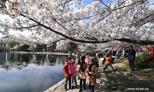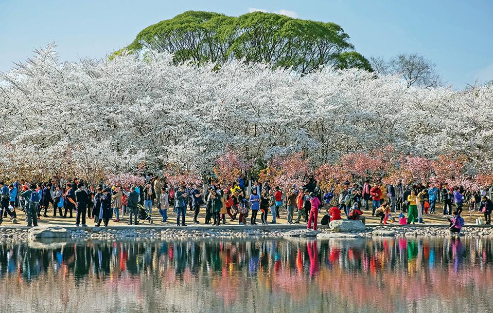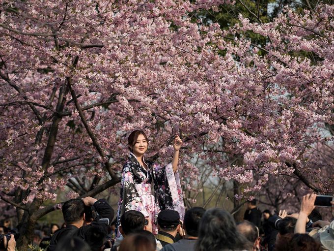 Η άνοιξη σε Κίνα, Ιαπωνία και Ταϊβάν είναι γεγονός. Στο πάρκο Yuyuantan του Πεκίνου στην Κίνα, τουρίστες και ντόπιοι συνωστίζονται για να φωτογραφηθούν ανάμεσα σε 2.000 ανθισμένες κερασιές.