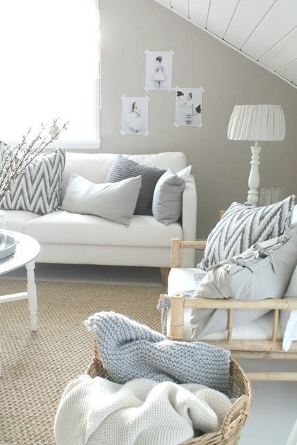Επιλέξτε σχέδια και υφάσματα που δένουν όμορφα μεταξύ τους και δημιουργούν μια cozy αίσθηση. Τοποθετήστε τα μέσα είτε διπλωμένα είτε πιο πρόχειρα ανάλογα με το πώς σας εκφράζει και βάλτε το καλάθι σας δίπλα στον καναπέ.