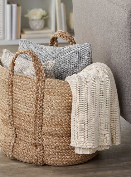 Επιλέξτε σχέδια και υφάσματα που δένουν όμορφα μεταξύ τους και δημιουργούν μια cozy αίσθηση. Τοποθετήστε τα μέσα είτε διπλωμένα είτε πιο πρόχειρα ανάλογα με το πώς σας εκφράζει και βάλτε το καλάθι σας δίπλα στον καναπέ.