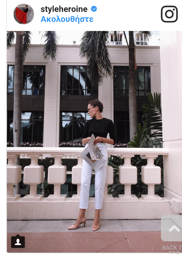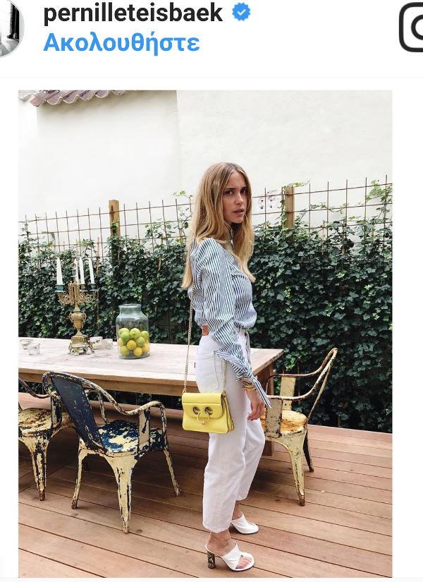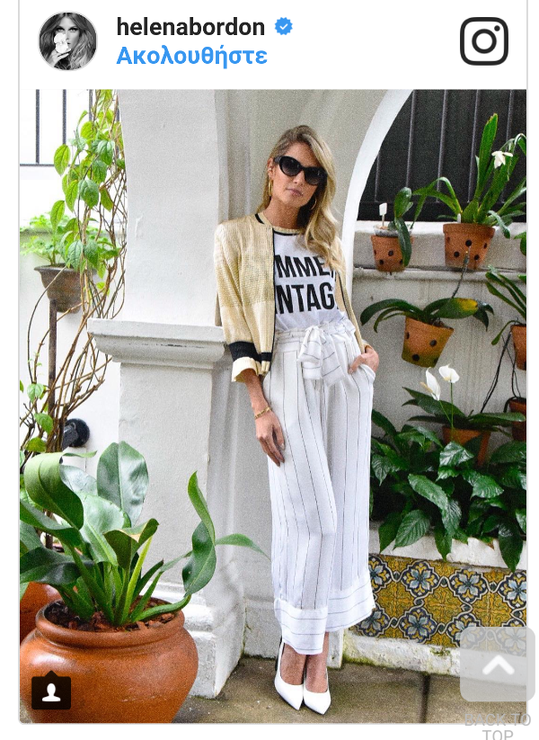 Μπλούζα με τρουκάρ μανίκι και λευκό παντελόνι bovary.gr