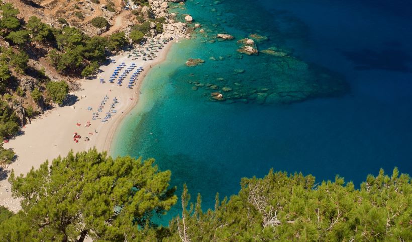 Ένα μισογεμάτο φεγγάρι από άμμο είναι τα Άπελλα, η ωραιότερη και πολυβραβευμένη παραλία της Καρπάθου. Και μία από τις κορυφαίες της Μεσογείου! Σμαραγδένια νερά έχει και η παραλία Κυρα-Παναγιά, αλλά και η Αχάτα, ο Λευκός, η Αμοοπή. Μεγάλος ο κατάλογος.
