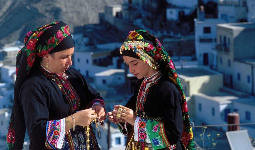Σε αυτό το νησί, ο χρόνος μοιάζει να έχει σταματήσει – μια Ελλάδα αυθεντική, σαν βγαλμένη από εποχή αλλοτινή: Γυναίκες που ντύνονται καθημερινά με παραδοσιακές στολές. Χωράφια που τα θερίζουν ακόμα με δρεπάνι. Γλέντια με λύρες και τσαμπούνες, όπου άντρες και γυναίκες κάθονται χωριστά. Έθιμα μοναδικά, περίεργα, ακολουθούνται πιστά ακόμη στον Βορρά της Καρπάθου. Τα πανηγύρια δεν έχουν όμοιά τους στο Αιγαίο.