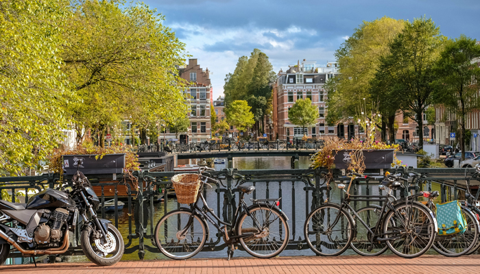 Σχεδόν πάντα εμφανίζεται στις πρώτες θέσεις, στις λίστες με τις πιο φιλικές πόλεις για ποδηλάτες και θεωρείται η παγκόσμια πρωτεύουσα του ποδηλάτου. Όποιος έχει επισκεφθεί το Άμστερνταμ με αυτοκίνητο, γνωρίζει ότι οι ποδηλάτες έχουν απόλυτη προτεραιότητα παντού και πάντα. Υπολογίζεται ότι στην πόλη κυκλοφορούν πάνω από 880.000 ποδήλατα και ότι το 58% των ντόπιων κάνουν καθημερινά ποδήλατο. Το σύνολο του δικτύου για ποδήλατα φτάνει τα 767 χιλιόμετρα και περιλαμβάνει λωρίδες κυκλοφορίας μόνο για ποδήλατα και ποδηλατικές διαδρομές.