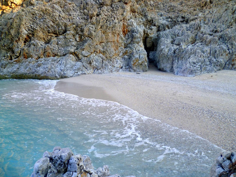 Την παραλία μπορεί να την ακούσετε κι ως Άγιος Ραφαήλ, από την ομώνυμη εκκλησία που βρίσκεται στην αρχή του φαραγγιού, αλλά κι ως Άγιος Σπυρίδωνας από την παλιά μικρή εκκλησία η οποία είναι κτισμένη μέσα στο βράχο.