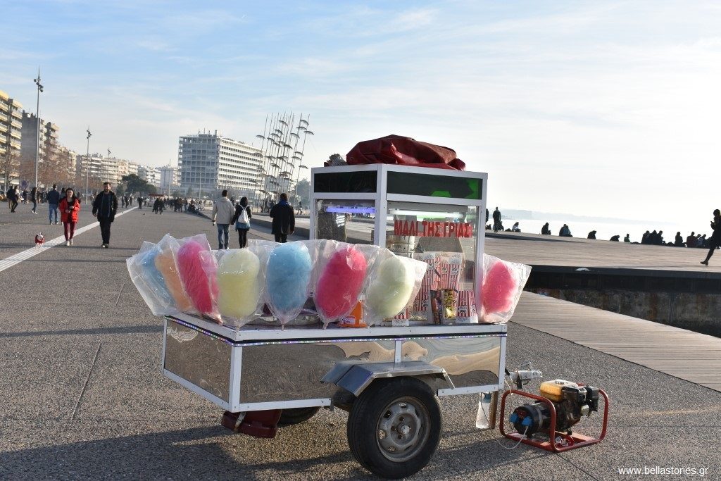 Μαλλί της Γριάς. Μια ιστορία απο μόνο του, μια ιστορία με την οποία συνδέθηκαν αυτόματα τα παιδικά μας χρόνια, όλων εμάς που μεγαλώσαμε στη Θεσσαλονίκη. Οι πάγκοι που πωλούν pop corn και μαλλί της γριάς, αποτελούν μια γλυκιά ανάμνηση που έχει καταχωρηθεί στη μνήμη μας και είναι ομολογουμένως πολύ ευχάριστο που μεγαλώνοντας διαπιστώνουμε πως δεν είναι μόνο μια ανάμνηση πιά, αλλά πραγματικότητα αφού παραμένουν εκεί, στο σημείο της πόλης που είναι απ’ όλα το πιο γλυκό, στην παραλία της Θεσσαλονίκης. Κόκκοι ζάχαρης αλέθονται με χρώμα και επάνω σε ένα κομμάτι ξύλο παίρνει μορφή και σχήμα το μαλλί της γριάς που τόσο λαχταρούσαμε να φάμε όταν ήμασταν παιδιά αλλά και που ακόμα (κρυφά) ποθούμε.